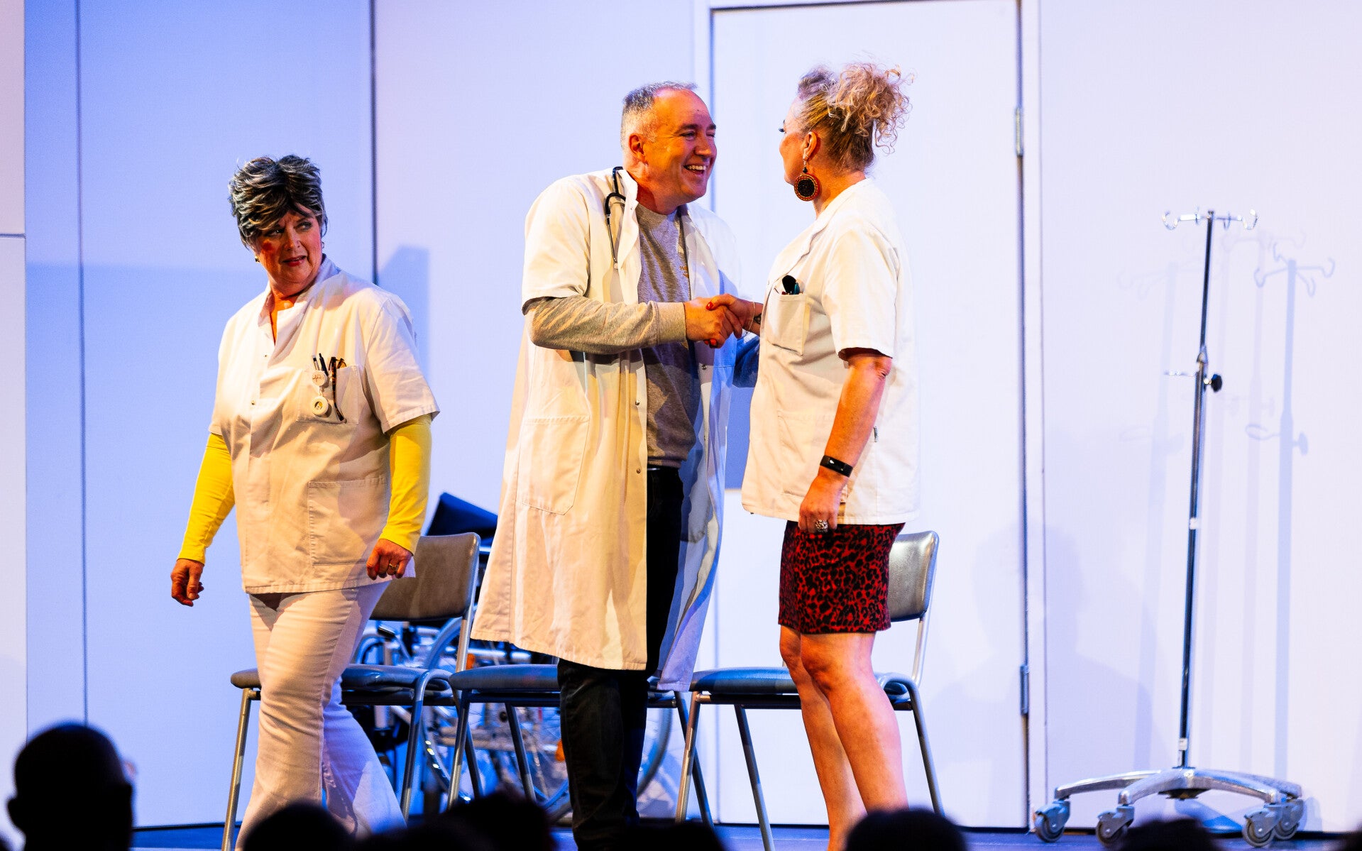 Dit komische stuk speelt zich af in de wachtruimte van een regionaal ziekenhuisje. Dokter Hogebaum is een oude dokter die nogal vergeetachtig en verstrooid is. Hij gaat er mee stoppen, maar moet eerst nog even zijn opvolger inwerken. Dan komt ene Joop van het uitzendbureau langs voor schoonmaak - werkzaamheden. Dokter Hogebaum ziet hem echter per ongeluk voor zijn opvolger aan, wat tot bizarre situaties leidt. Joop denkt al snel dat hij dus ingehuurd is als dokter en vind dat eigenlijk wel interessant en doet dan ook zijn uitstekende best. Maar waar is de echte nieuwe dokter en wat voor bezoekers komen er verder allemaal wel niet langs in het ziekenhuis? Zo is er Nella, die werkelijk alle kwaaltjes schijnt te hebben die er maar bestaan en komt Rebecca eerder in het ziekenhuis om een goede partij te schaken, dan dat ze werkelijk iets mankeert. Ook komt Roel langs met een zere duim, maar is dat de enige reden waarvoor hij langskomt? Gelukkig kan het ziekenhuis beschikken over het kordate hoofd van de verpleging Joke en verpleegkundige Annie, maar of die de boel nog kunnen redden?